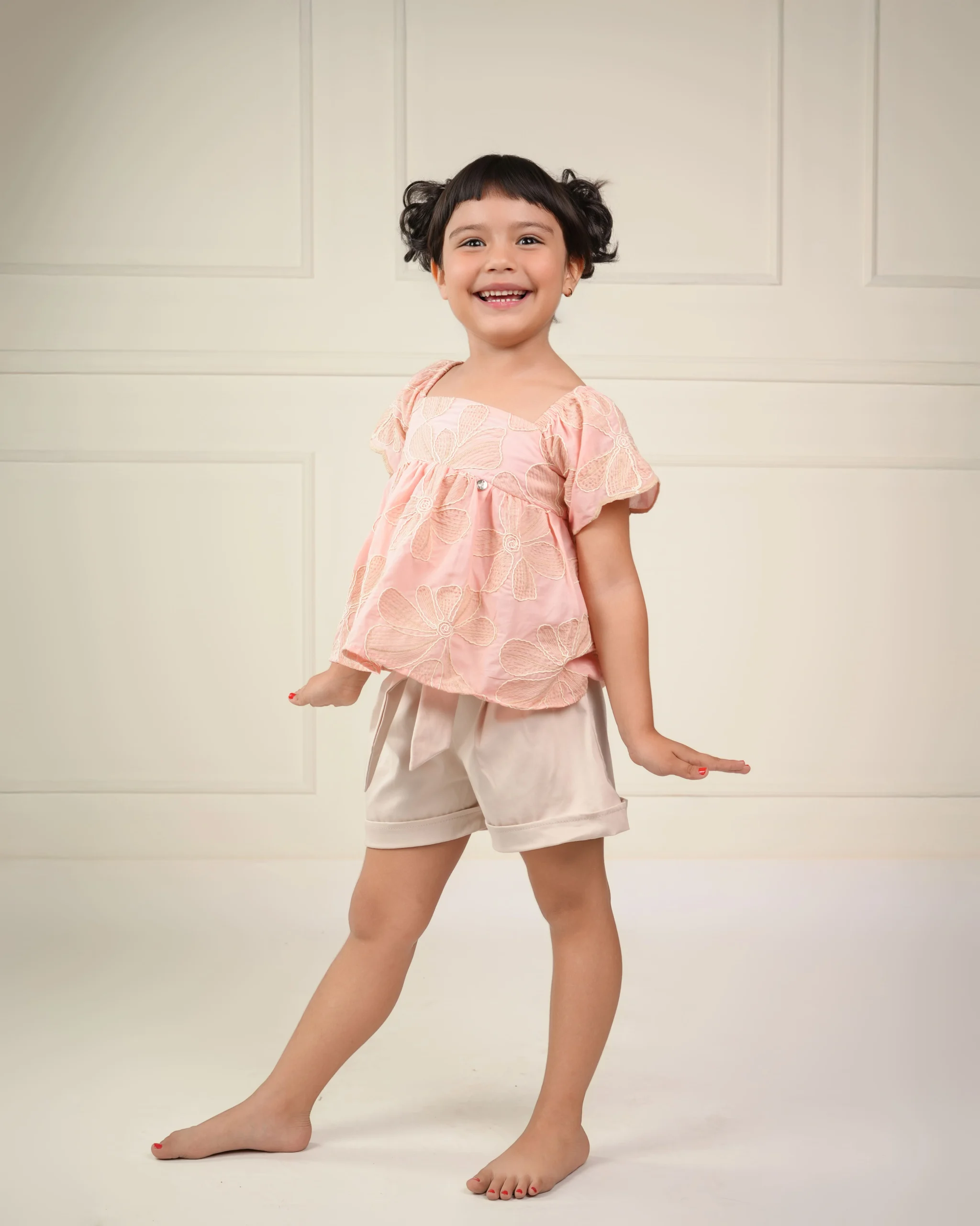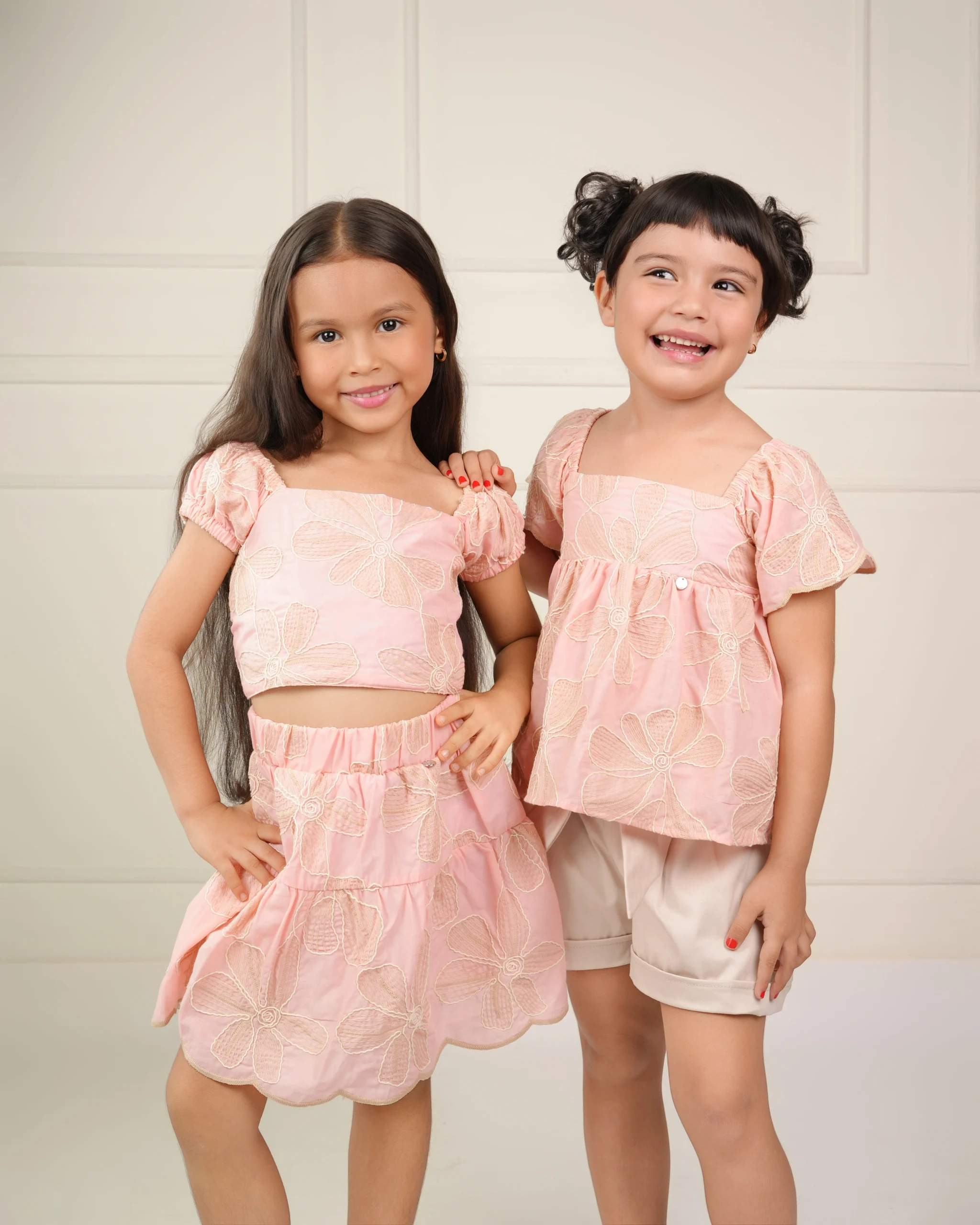 El set Charlotte combina dulzura y elegancia en un diseño encantador, perfecto para las pequeñas que aman la comodidad con estilo. Su blusa está confeccionada en algodón bordado 3D, con mangas tipo mariposa que aportan volumen y un acabado delicado. El terminado artesanal en las costuras resalta su calidad y detalle, mientras que el short en drill satinado complementa el look con un toque moderno y suave al tacto. Ideal para días especiales o celebraciones familiares.
